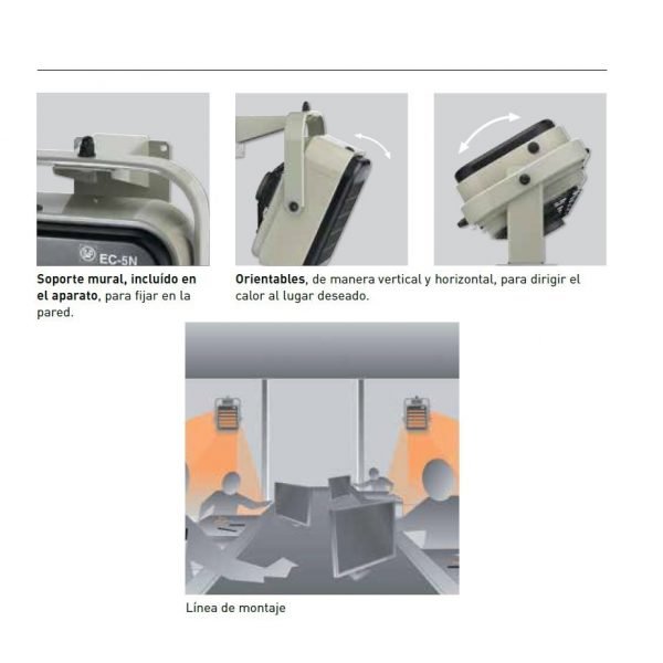 Talleres y puntos de trabajo: Calienta áreas específicas sin desperdicio de energía.
