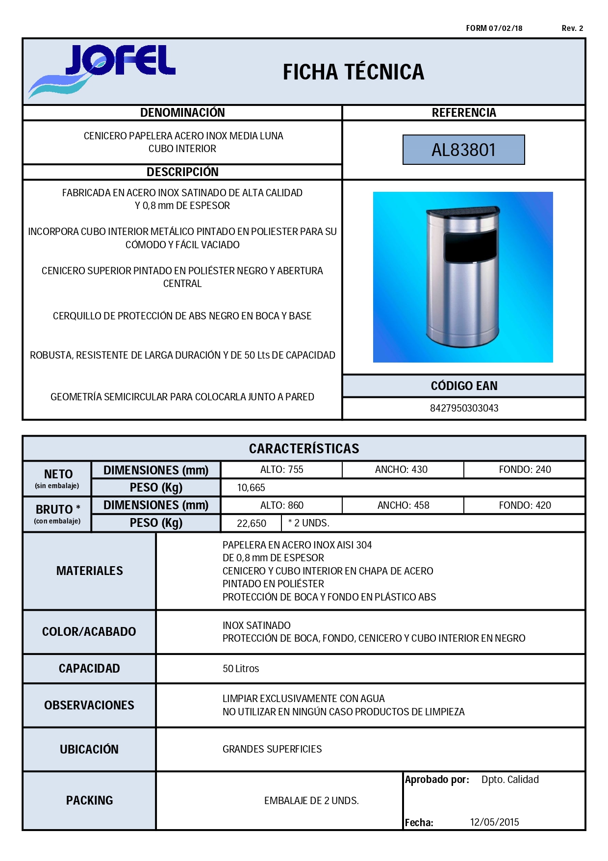*Incorpora cubo interior metálico para su cómodo y fácil vaciado.